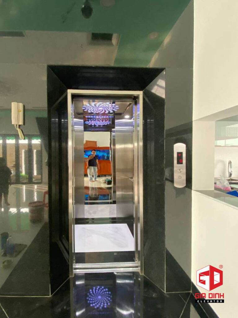 Thang máy Bình Thạnh – TPHCM Thang máy inox gương đơn giản sang trọng Thang máy gia đình inox gưởng